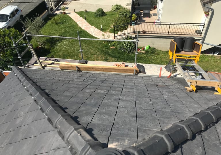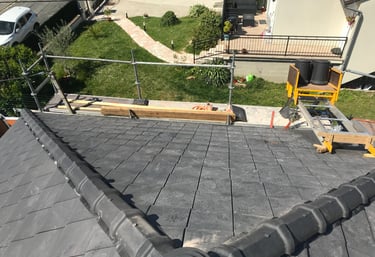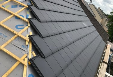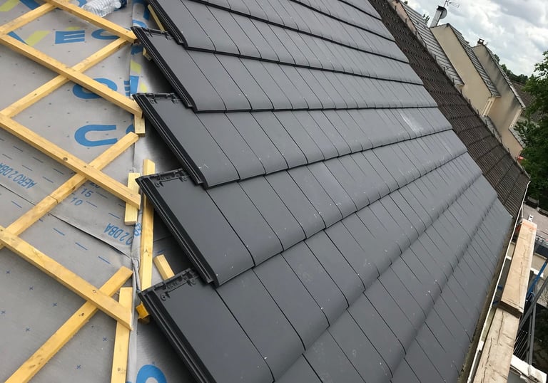 Rénovation et pose de toitures en tuiles, ardoises, zinc, avec étanchéité et nettoyage.